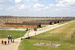 - 🌍 Auschwitz II-Birkenau. The second camp, built after Operation Barbarossa to accommodate the influx of captured Slavs from the Soviet Union, and is around 3 km from Auschwitz I. You can still see the entrance gate, the railway track and ramp and a single row of preserved barracks; the rest were destroyed. Many of the fences, chimneys and watchtowers are still standing, which illustrate the camp's bewildering size. You can also see the buildings where incoming prisoners were shaved and given their "new" clothing, the ruins of the four crematoria and gas chamber complexes, ponds where the ashes of thousands of people were dumped without ceremony, and a memorial site. Walking through the whole site may take several hours, and the sheer scale of the site may be harrowing to visitors. If visiting during cooler months, be aware that in the evening (which comes early during the winter months), the temperature drops very quickly across such a flat open space.