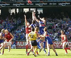 Australian rules football is a sport that originated in the state of Victoria, Australia. Today it is the most popular spectator sport throughout Australia with the exception of the states of Queensland and New South Wales, where rugby league dominates, as well as Canberra, where rugby union and rugby league vie for supremacy.