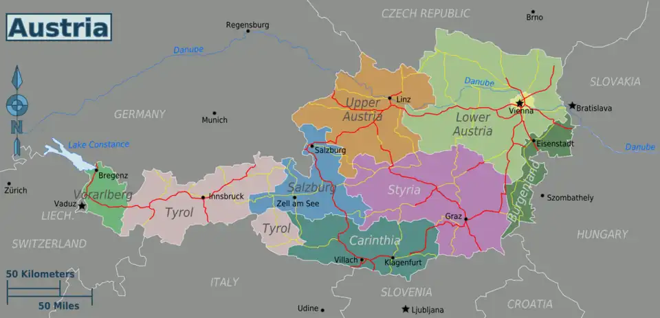 Austria is a federal republic comprised of nine states (Bundesländer):