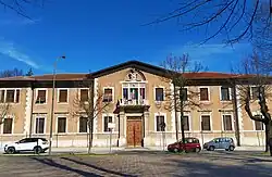 - π Town Hall (Palazzo Municipale), Piazza della Repubblica, 8 (city centre), β +39 0863 5011. It houses the administrative offices of the municipality of Avezzano. Designed in 1920 by the engineer Sebastiano Bultrini, it was inaugurated in the first half of the twenties and finally completed in 1928, a few years after the earthquake of 1915. Stylistically, the building presents itself as a Tuscan residence of the fifteenth century with neo-medieval architectural elements and a facade accompanied laterally by two symmetrical turrets with circular windows on the upper part and mullioned windows on the lower part. The three triple lancet windows are positioned on the central body equipped with a balcony. The ground floor is characterized by a portico on pillars where in 1931 a commemorative plaque was installed, the work of the architect Luigi Gallo, in memory of Nazario Sauro who, together with the irredentists, helped the population struck by the earthquake of 1915. Inside, the paintings of Ferdinando Stracuzzi depict the works for the reclamation of the Fucino area and the reconstruction of the city after 1915. Some small plates made by Carlo Albani depicting the official coats of arms of the municipality are on display. The romantic garden, in which some archaeological finds are found, surrounds the rear of the building.