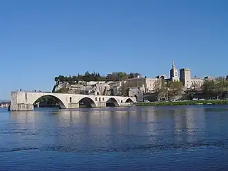 - 🌍 Pont Saint-Bénezet (Pont d'Avignon). It is a ruined bridge not far from the Palais des Papes. The bridge was built in the Middle Ages — before the arrival of the Papacy — perhaps partly to allow the local bishop to cross the river to Villeneuve-lès-Avignon, where the church authorities had installed themselves because of Avignon's then-infamous dirt and lawlessness.