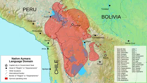 Aymara is the language of the Aymara people in the Andes. It has over 2.5 million speakers, in the country of Bolivia (official language), Chile, Argentina and Peru (official language).