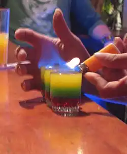 - 🌍 Leprechaun Bar, Eloy Alfaro (between Oriente and Espejo), ☏ +593 98 761 6540. This is the happening place for travellers and hip people in Baños to hang out. By the front bar there is a large dance floor with the DJ playing a variety of music. Upstairs is a smaller dance floor. But the real gem of the place is the back yard, which has another bar, a stage for occasional live music, and a large fire pit that the staff keeps roaring all night long on weekends. Be sure to try the signature "Flaming Bob Marley" shot.