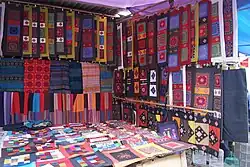 - Bắc Hà Sunday market (tourist buses will stop in a parking area in the centre of town; from there, roadside stalls will be visible, and walking in their direction will bring you to the heart of the market). The Sunday market (which is much larger than the Sa Pa market) is a big, colorful bazaar overflowing with everything under the sun. Most visitors will probably be interested in the embroidered fabric handicrafts such as cellphone pouches, clothes, handbags, purses, and cushion covers, tablecloths and table runners sold by minority hill tribes. Also available are scarves; T-shirts; metal jewellery and trinkets; carvings and figurines made of metal, wood and stone; and home furnishings such as place mats, and lacquered bowls and chopsticks created out of bamboo. The meat and vegetable markets make for interesting photographs, and braver tourists may even want to try eating while perched on low benches or stools at one of the roadside food stalls in the market. Locals also visit the market to purchase tools, children's toys, and household items.