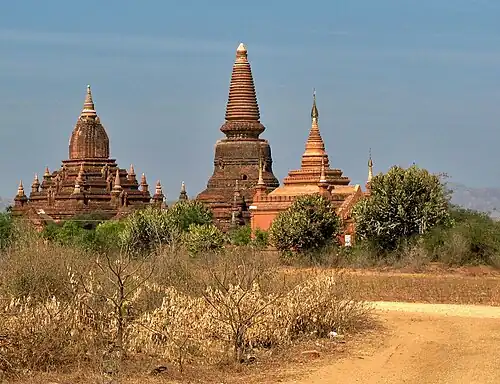πDhammayazika Pagoda(north of the New Bagan-Nyaung U road).Unusually-shaped five corner, circular pagoda made of bricks. Built in 1196 when King Narapatisithu ruled.