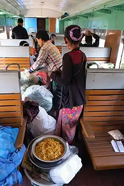 Mandalay β There are two direct train service running to Bagan daily, one departing at 07:20 and arriving at 18:45, and one departing at 21:00 and arriving at 04:59 the next day. Only the night train, which might not operate in the low season, has 1st class so check in advance. otherwise you will have limited room to store your stuff and uncomfortable seat in an incredibly crowded train. Tickets are available at the railway station for 1,800 kyat (1st class) and 1,300 (ordinary seat).