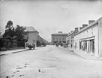 The parallel was that Dublin like Paris was dirty, tumbledown and dangerous. Better to build anew, on a classical grid pattern, and make this the power-base: imagine the ambassadors, artists and supplicants that would gather at the gates of Dunleckney Manor while it transmuted into bling. But Bagenal was no Sun King, and all this was castles-in-the-air, as imaginary as his noble title. Later the story was told that he completed the courthouse only to abandon the project when the main coach route altered to bypass town. In truth even the courthouse was only erected about a century later, Bagenal talked big but didn't much improve his own manor let alone town, and Muine Bheag was destined to remain a "small thicket".