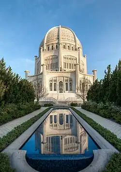 - Wilmette, Illinois, United States of America — just north of Evanston, accessible using Chicago's public transportation network, home to the 🌍 Bahaʼi House of Worship for North America, the second one ever built and the oldest one still standing. It is a beautiful structure incorporating motifs from many of the world's major religions like Christianity, Islam, Judaism and Hinduism, and surrounded by immaculately-manicured gardens designed to evoke a sense of tranquility. What sets this Baha'i temple apart from the others is that ʻAbdu'l-Bahá, Baháʼu'lláh's son and successor, had personally visited the site and laid the ceremonial first cornerstone of the building.