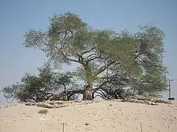 - 🌍 Tree of Life (You need a car to reach the tree, as it is far from the main roads and not on any public transportation route. To reach the tree, take the Zallaq Highway heading east, which becomes the Al-Muaskar Highway. You will eventually see a sign for the Tree of Life indicating a right turn. (Although the sign seems to point you to turn onto a dirt road which actually goes nowhere, do not do so, instead wait until the next intersection which is several metres ahead.) There are no signs as you travel down this road, but pay attention to a scrap metal yard on your right. Before you reach a hill which warns you of a steep 10% incline, take a right. As you continue straight down this road (including roundabouts), you will begin to see Tree of Life signs again. The signs will lead you down a road which will then be devoid of these signs, but you will eventually see the tree in the distance on the right (it is large and wide, not to be mistaken for other smaller trees along the way). You turn onto a dirt path at Gas Well #371. You can drive up to just outside of the tree, but make sure you stay on the vehicle-worn path, as turning off of it is likely to get your car stuck in the softer sand.). Although trees grow in Bahrain, this one is special because it is more than 400 years old which has survived the harsh desert climate conditions. Although it seems like a chore to reach, the Tree of Life is worth the visit for the oddity of it. The tree is covered in carved graffiti, although this is not visible until you get up close. Try to make your arrival near sunset for a picturesque view of the tree and the surrounding desert.