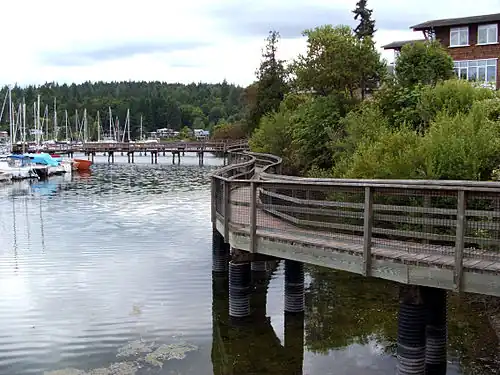 - π The Harbor Marina, 233 Parfitt Way SW, β +1 206-550-5340. Guest moorage is available with free showers, laundry facilities, water, electrical (30 amp), phone and cable TV and pump-out station. $30-45 per night depending on length includes electrical.
