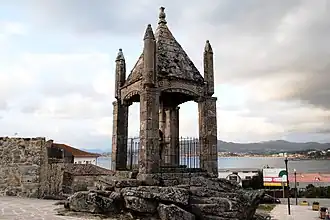 Baiona (Bayona in Castilian Spanish) is a town in Galicia on the Atlantic coast of Spain, 20 km south of Vigo. It has a small fishing fleet but is mostly a tourist resort, with a resident population of 12,500 in 2024. In 1493 its townsfolk were the first Spanish mainlanders to hear of the "New World", when the storm-tossed Pinta limped into port.