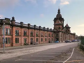 • 🌍 Lomond Galleries, Main Street, Alexandria G83 0UG. Small dilapidated shopping centre with many vacant shop units, so this historic ornate sandstone building is at risk of dereliction. It was built in 1906 as the Argyll Motor Works, the largest car factory in Europe in its day, but the company declined soon after. It then became a torpedo factory then an electronics factory, then was empty for a long period before the shopping centre opened in 1997. OSM directions target=_blank