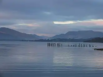 Balloch is a town on Clydeside in central Scotland, on the southern shore of Loch Lomond. It expanded from 1850 when the railway arrived, bringing trippers from Glasgow to the pier, whence boats and charabancs conveyed them around the loch. Balloch is still easy to reach by public transport, but this part of the loch is lowland and urban, and few boats now sail so you need your own transport to reach the more attractive areas of Loch Lomond and The Trossachs National Park. Balloch in 2021 had a population of 6030.