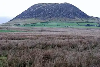 - π Slemish or Sliabh Mis is the plug of an ancient volcano. It formed in the Paleogene or Tertiary Period some 23-66 million years ago, the period when mammals came to the fore. It's 437 m / 1434 ft, a "Marilyn" rising abruptly from the lowland fields - ascend from the car park to its west on Carnstroan Lane, a short, steep, rocky path. Views stretch from the Sperrins to Scotland, unless the rain's set in again. Slemish is a pilgrimage site on St Patrick's Day, as when the young Patrick was first abducted to Ireland, he worked as a herdsman here for six years.