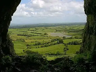 - π Keshcorran Caves are in the side of a limestone outcrop off R295 and have yielded human and animal remains from the last Ice Age. You're free to explore them. They soon end blind but one folk-tale describes a woman being dragged by a stubborn calf into a cave in Roscommon, to emerge here. The 18th century artist Gabriel Beranger heard this tale and shrugged: "We believed it rather than try it".