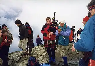 - π Conic Hill can be climbed by itself, an easy hike from Balmaha. At 361 m / 1184 ft it's a "Marilyn", with a secondary summit at 358 m. It does look conical, a sharp little summit on the Highland Boundary Fault Line, but that's coincidental: the name is Gaelic coinneach, "moss", so be ready for soggy conditions.