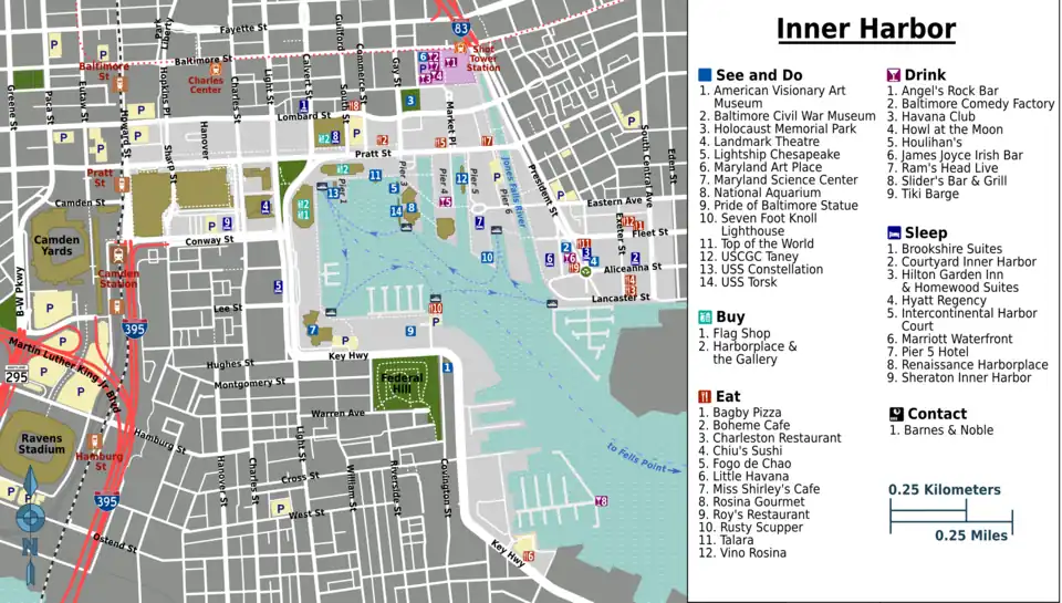 Today, the Inner Harbor is the city centerpiece, Maryland's number one tourist destination, and the single biggest economic boon for the city. The views across the harbor and its ships towards the old Domino Sugar Factory in the south and the skyscrapers, including the Maryland World Trade Center, in the north are the icons of the city. Restaurants and big hotels line the waterfront, and tourists fill the streets, promenade, and piers. The Inner Harbor is less popular with locals, however, so you would do well to get out a bit to other neighborhoods like Fell's Point and Midtown to get a better feel for the local culture!