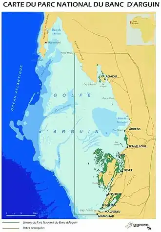 Banc d'Arguin National Park is in Coastal Mauritania, south of Nouadhibou. It's inscribed on the UNESCO World Heritage list and is home to the Imraguen people.