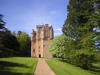 - 🌍 Craigievar Castle, Alford AB33 8JF (Off A980), ☏ +44 844 493 2174. Apr-Jun Sep: F-Tu 11AM-5:30PM; Jul-Aug: daily 11AM-5:30PM. This fairy-tale pink castle has witches-hat turrets befitting Disneyland, though Walt was mostly inspired by Neuschwanstein. Built 1576-1626 in Scottish Baronial style, it has the original carved plaster ceilings and Jacobean woodwork. Admission is by guided tour. There is a small attractive garden and woodland, watch for pine martens. Adult £14.50, child or conc £11, NT/NTS free.