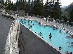 - 🌍 Banff Upper Hot Springs and Pleiades Massage & Spa, Upper end of Mountain Avenue, ☏ +1 403-762-1515, toll-free: +1-800-767-1611, hot.springs@pc.gc.ca. 10AM-10PM varies seasonally. All the amenities of a modern facility are featured in this historic spa and bathhouse, with a backdrop of spectacular alpine scenery. Relax in soothing hot water where travellers have come to "take the waters" for more than a century. For an extra apres ski laugh, guests wishing to amuse can rent a hilarious 'traditional style' bathing costume. The outdoor hot pool is a great place to soak and watch falling snowflakes or the stars. Can be quite busy at times. In late spring, the hot springs flow sometimes drops significantly and must be supplemented with artificially-heated water. The Upper Hot Springs website's "Water" page states whether they are using all hot springs water or are supplementing. $7.30 per adult.