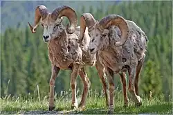 Banff has a lot of wildlife roaming in and around the town. Be careful of elk and deer when driving in the town. The most dangerous wildlife in Banff National Park are not bears or cougars, but elk. In spring, female (cow) elk are very protective of their offspring and will charge anyone who they consider a threat. In the fall, male (bull) elk are rutting and very aggressive. Cow elk weigh roughly 230 kg (507 lb), while bull elk weigh about 320 kg (705 lbs). Both sexes are capable of seriously injuring a person, and rutting males have also damaged cars.