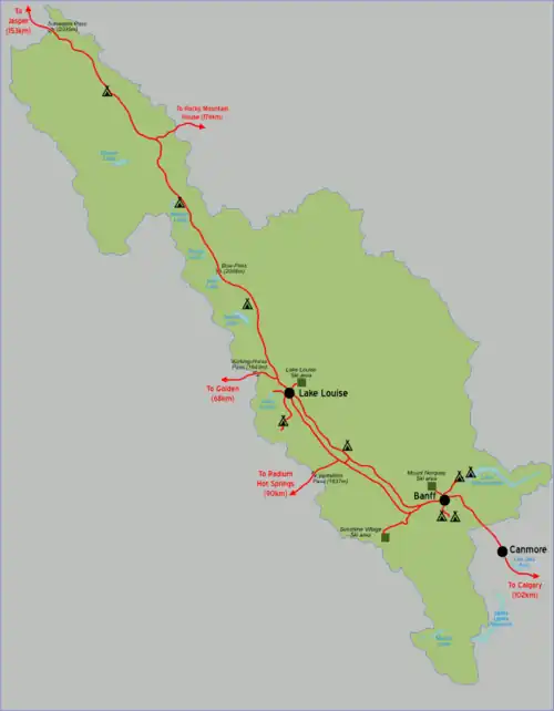 | Routes through Banff National Park |