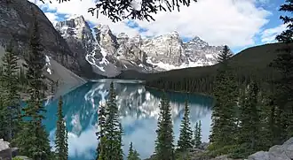 - ๐ Moraine Lake. Scenic mountain location with the lake an incredible blue colour due to the glacial rock flour. A short paved trail from the car park (The Rock Pile, 0.8 km return, 30 meter elevation gain) provides a spectacular view of the lake, known as the "Twenty Dollar View", as it was featured on the reverse side of the Canadian $20 banknote (1969 and 1979 issue). By 8:30AM the coach groups start to arrive. Driving your own car to the lake is no longer allowed; the only way to get there is by taking a shuttle bus. These fill up quickly, so reservations are essential.