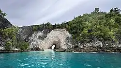 - 🌍 Tanjung Gundul (Can only be reached by boat, e.g. from Popisi or Lokotoy, and the last 20 meters only by swimming). Accessible 24/7. Picturesque cliff with a hole created by sea waves. The floor is made of sand-colored stones. In the water in front of the place there may be seasonal jellyfish, so consider wearing long-sleeved clothes and swimming shoes to get there. Free.