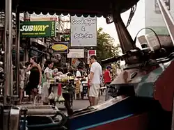 As Khao San Road leaves its backpacker roots, standards (and prices) are rising. In the last ten years, many popular international food outlets have set up branches in Khao San Road, including Burger King, McDonald's and Subway. More mid-range restaurants are opened on a daily basis, but don't expect to splurge. Those looking for truly good food should to head elsewhere, such as to Sukhumvit.