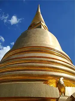 - 🌍 Democracy Monument (อนุสาวรีย์ประชาธิปไตย), Ratchadamnoen Klang Rd (at the Ratchadamnoen Klang Road and Dinso Road intersection). Completely occupying a roundabout on a major thoroughfare is the Democracy Monument. Its distinguishing features are the four 'wings' which are at four equally spaced points around a smaller central shrine. The wings are decorated with artworks of war and war-related events. Quite impressive when seen from a distance (especially at sunrise and sunset), but maybe not worth the hazard involved in running across five lanes of Bangkok traffic for a closer look. It commemorates the June 1932 military coup d'état that led to the country's first democratic constitution in place of absolute rule. Demonstrators gathered here in 1973, 1976 and 1992 in their struggle for democracy, signifying the important role this monument has played in recent Thai history. Free.