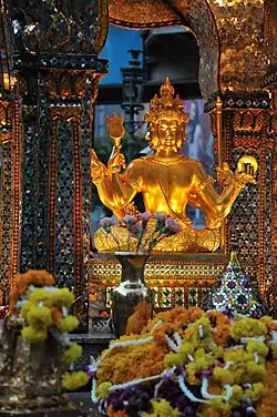 - 🌍 Erawan Shrine (ศาลพระพรหม), 494 Ratchadamri Rd (BTS Chit Lom), ☏ +66 2 254-1234. 06:00-00:00 daily. A Hindu shrine that houses a statue of Phra Phrom, the Thai representation of the Hindu creation god Brahma. Free.