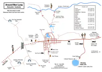 Buses and other forms of transit going to Banlung may be advertised by the province name "Ratanakiri" rather than the town name "Banlung". Ratanakiri is a more recognizable name to Cambodians from other parts of the country, since it's the name of one of the 25 provinces they had to memorize in school.