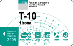 - Anonymous reloadable cardboard cards which cost €1 and can only support one pass at a time. They can support T-casual, T-familier or T-grup passes. T-usual passes are also available on this type of card but can only be reloaded with T-usual passes. This is low cost option aimed at less frequent users like tourists.