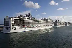 Large cruise ships dock 1–2 km (0.62–1.24 mi) to the southwest. Many of them offer bus-shuttles to locations at the south end of La Rambla. The ferries dock almost directly on the Ramblas.
