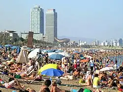 • 🌍 Barceloneta Beach (Platja de la Barceloneta) (10-15 minutes from M Barceloneta, or a few minutes from M Vila Olimpica/Ciutadela). The beach stretches from the tip of Barceloneta in Port Vell and far away, passing Vila Olimpica and further. On warm summer days it will be crammed with people, and it might be a good idea to find a spot further away or go to a beach outside of Barcelona. There is nothing better than covering your toes with sand and lying upwards in the sun, and there is no better place to do this than on Barceloneta's famed beauty. Sit back, relax and enjoy. OSM directions target=_blank