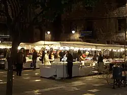 • 🌍 Mercado de La Boqueria, La Rambla, 91. On the Rambla, and offering a wide variety of fresh, mainly raw foods. Some stall sells many kinds of well cooked ready to eat pasta, fresh fruit already sliced. When buying anything here head to the cheaper stalls at the back: you can save a fair bit. OSM directions target=_blank
