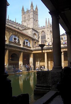 - 🌍 Roman Baths, Stall St, BA1 1LZ, ☏ +44 1225 477785. Nov-Feb: 9:30AM-5:30PM; Mar-Jun Sep-Oct: 9AM-6PM, Jul-Aug: 9AM-10PM. Built by the Romans around 2000 years ago, and rediscovered by the Victorians, the Roman Baths are the must-see tourist attraction in Bath. The baths are fueled by England's only mineral hot springs, outputting over a million litres of hot water each day. You can wander the rooms that made up the baths, including the large open air 'Great Bath', see Roman, medieval, and Georgian architecture, and learn about the history of Bath Spa. The Baths are superbly maintained and the exhibits are filled with eye-popping archaeology. A fountain at the end offers a free taste of the (filtered) thermal water. Don't forget to pick up your free audio guide at the entrance. Reserve a minimum of 2 hours for a complete visit. As the most popular attraction in Bath there are often waiting lines at the entrance because only a limited number of visitors are inside at any time, so make sure to buy a ticket online or come early if possible. Prices vary depending on month and day of the week. Weekend prices £20.50-28.00/adult, £19.50-27.00/seniors, £13.00-20.50/child, prices on weekdays are £2-4 cheaper..