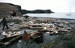 There are remnants of coal mining activity in the east part of the island at a place called Tunheim, including short defunct railroads.