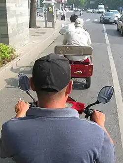 Traffic can be crazy in Beijing, and reckless driving is fairly normal. People honk all the time. Honking is not usually considered rude. It is simply another way to indicate that the driver is there. Be prepared for drivers to violate traffic laws even to the extent of going in reverse on highways to back up to a missed exit or driving on a sidewalk. Also expect occasional road debris (a piece of wood or torn out tire) to be laying in the roadway. Pedestrians should be very careful crossing the street: People will generally stop for you, but they will honk. Keep an eye on the locals and cross with them — there is strength in numbers. Cars don't need to stop at a red light when they are turning right. Although the traffic law gives the first priority to pedestrians, not every driver obeys the rule.