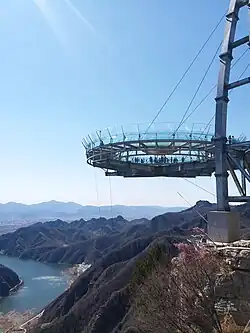 - Tianyun Mountain, Huangtuliang, Huangsongyu Town (Nearest bus stop is 3.5km away; tour group or taxi only viable means of getting there). 8:00-17:00. The destination has a 160 meter glass bottom bridge and small viewing platform built over 1,000 meters above the valley. The surrounding landscape of mountain peaks is lush in the summer, making for one of the most beautiful outdoors sights in Beijing.