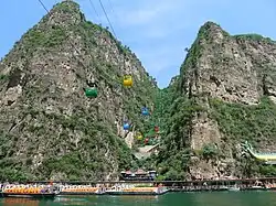 - 🌍 Longqingxia (Longqing Gorge). This scenic area is one of the most popular day trips in Beijing. The Lonqing Gorge is called the "Little Three Gorges" because of the resemblance to the Three Gorges near Yichang. The highlight is taking a boat cruise down the scenic canyon, which had been flooded by the dam completed in 1981. Cruise tickets are available for ¥60/person that take in sights along the water including Coronet Island, a small mountain surrounded by water, and the mountain Zhongshan which looks like a big clock in the water from every angle. Another available activity is downhill rope sliding for ¥50/person, where climbers use ropes to descend in a location between two cliffs with blue sky above and clear water below during the five minute descent.