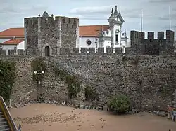 Its castle, built by King Dom Diniz, is believed to be the best example of medieval architecture still extant in Portugal. It is a square, massive structure 36.5 m (120 feet) high, from the top of which the whole of the Alentejo country and the Cintra mountains may be seen. The walls of the castle are covered with hieroglyphics.