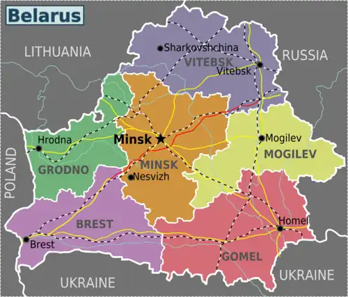 | Minsk Oblast (Minsk, Nesvizh) The traveller's main entry point. The capital city, Minsk, is situated here. |