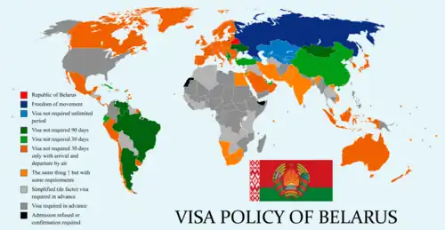 | Note: Some governments advise against all travel to Belarus due to the Russian invasion of Ukraine, arbitrary enforcement of laws and the potential for civil unrest. | |