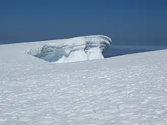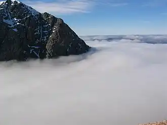 🌍 Ben Nevis summit has a cairn, the ruins of a weather observatory (active 1883-1904, now used as an emergency shelter) and a cliff edge. Ice here may form a cornice - an overhang - unsafe to stand on.
