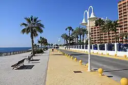 It is approximately 15 km southwest of Malaga and merges with Torremolinos, just northeast of it, along the coast.