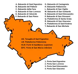 The upper town is surrounded by world heritage listed stone walls, built in the 16th century by the Venetians, which survive to a large extent to this day. The four gates that led through the walls to the city do survive as well.