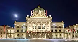- 🌍 Bundeshaus (Federal Palace of Switzerland; Curia Confoederationis Helveticae), Bundesplatz 3. Inaugurated in 1902, the Swiss Parliament building is a great dome separating the two chambers: the National Council and the Council of States. Free guided tour when Parliament is not in session (German Tu-Sa, English only Sa 14:00, book online). In session, there are 25 spaces in the spectators' gallery, no advance booking. For either, you need your passport. Free.