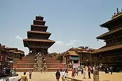 - Taumadhi Square's Nyatapol Temple dates back to 1702 AD. The colossal five-storied edifice is the country's tallest pagoda temple. The struts, doors, windows and tympanums, each embellished with attractively carved divine figures, portray the creative tradition of Newar craftsmen. The temple is dedicated to the Goddess Siddhi Laxmi, the manifestation of female force and creativity. Next to the Nyatapol Temple is the rectangular shaped Bhairavnath Temple. It houses a gilded bust of Bhairav, the ferocious manifestation of Lord Shiva. The three-storied pagoda was razed to the grounds by the 1934 earthquake, and its latest renovation was undertaken by the Bhaktapur Municipality in 1995.