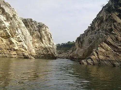 - Marble Rocks. The perpendicular magnesium limestone rocks fringe the crystal clear placid waters of the Narmada providing a fascinating site. Boating facilities are available between November-May. Boating on a moonlit night, when the whole stretch of water is transformed into a sheet of liquid silver. In the narrow channel of the mighty river, there is a place approached so closely from the opposite banks that the local people have aptly named it the "Monkey's Leap".